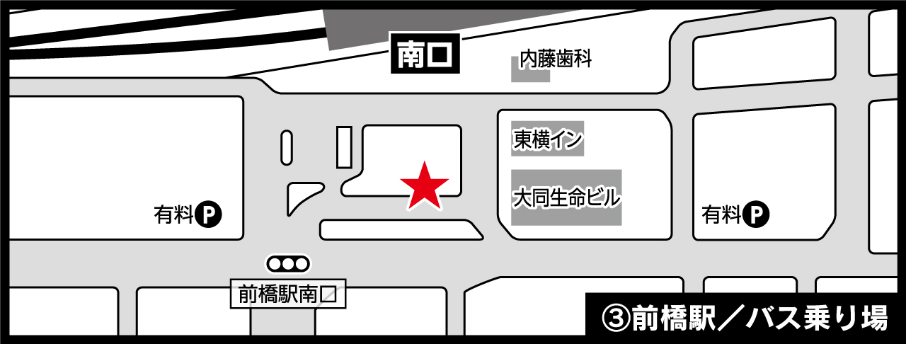 この間にシャトルバスの乗車を希望される場合は、新前橋駅または前橋駅よりご乗車願います。 - JR新前橋駅(東口)