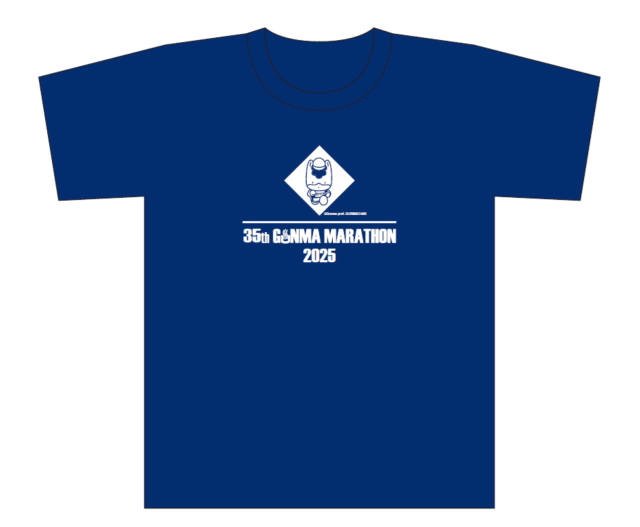 今大会のTシャツ、フルマラソン完走記念タオル(スポーツタオル)はネイビーを基調に県のマスコット・ぐんまちゃんをあしらいました。