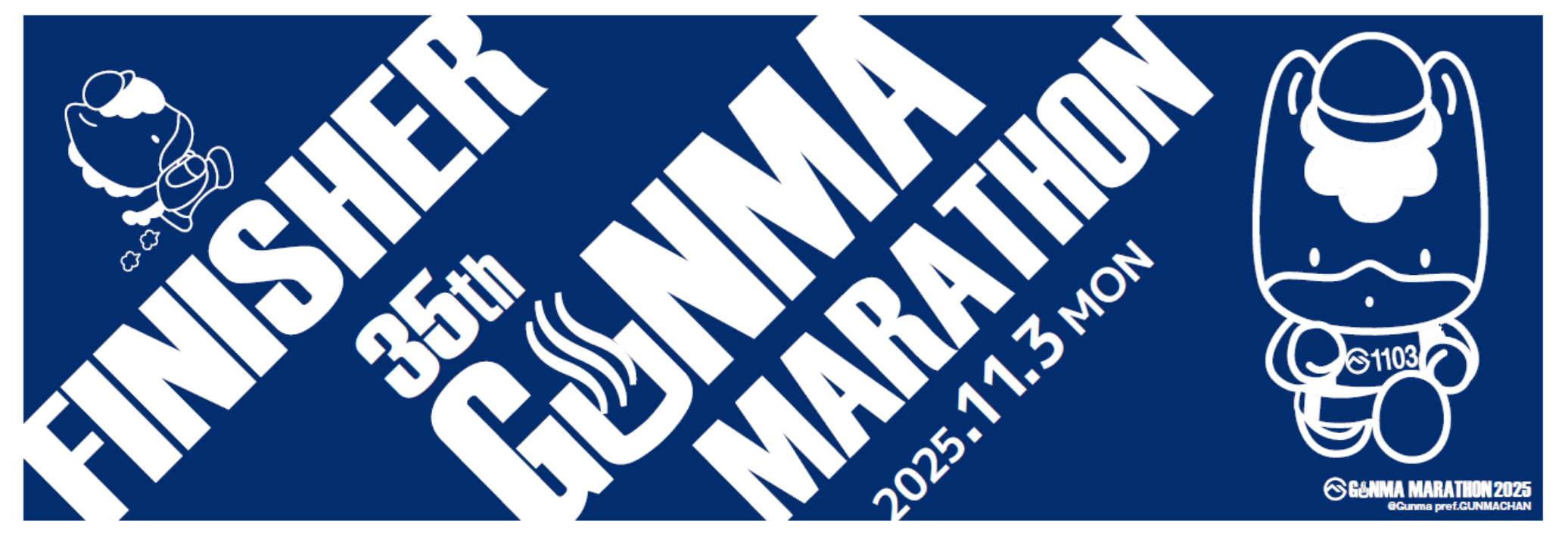 今大会のTシャツ、フルマラソン完走記念タオル(スポーツタオル)はネイビーを基調に県のマスコット・ぐんまちゃんをあしらいました。