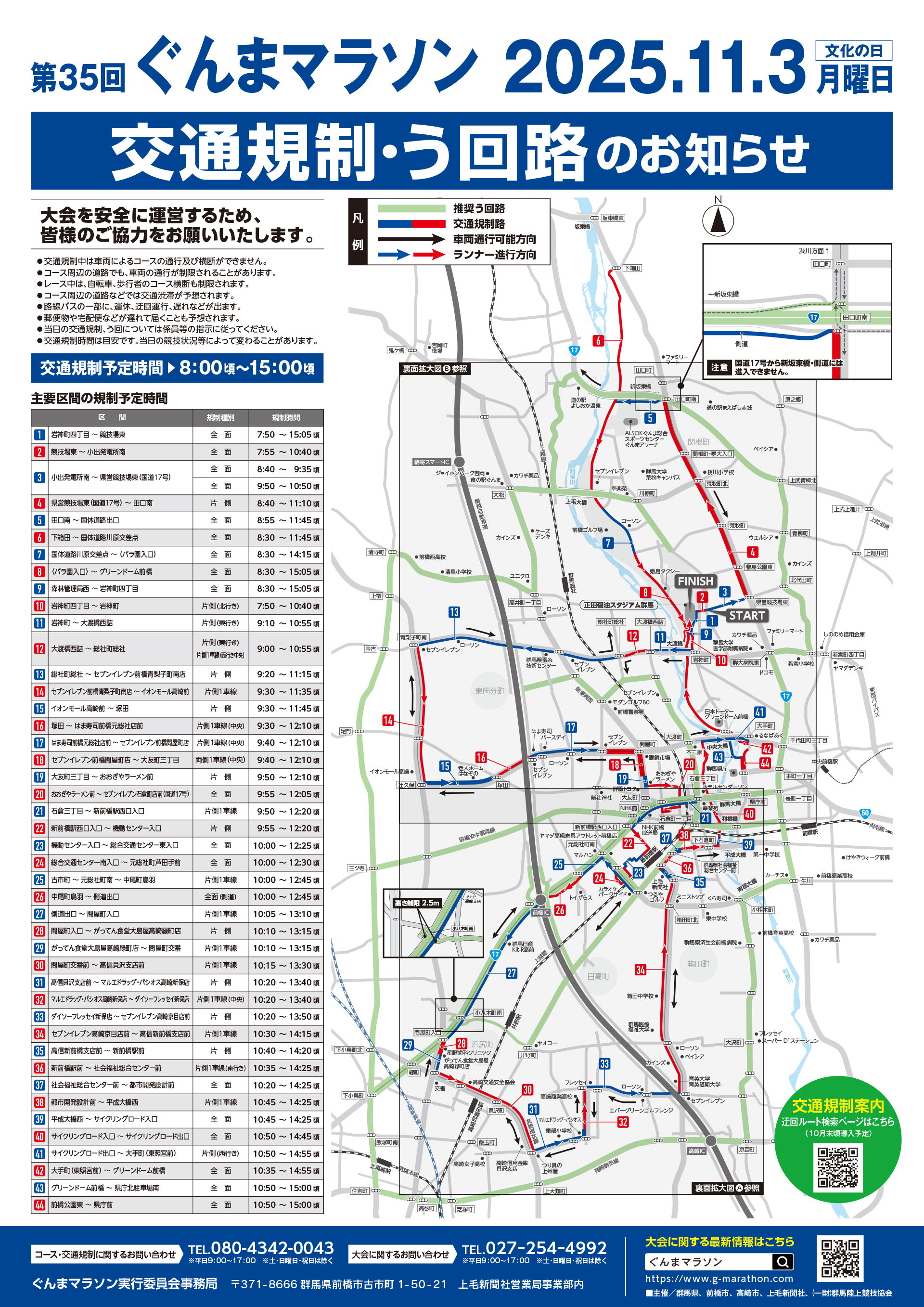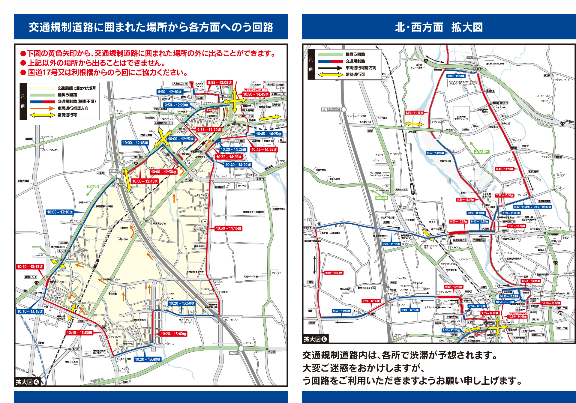 大会当日、前橋市・高崎市でランナーの通過に合わせて交通規制を行う予定です。沿線や周辺道路は混雑が予想されますので、ご理解とご協力をお願いいたします。NAVITIMEを導入しました。